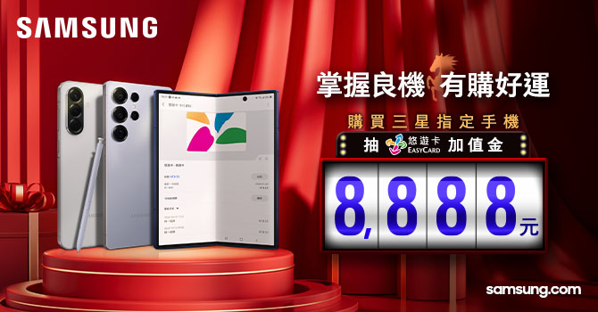 3.本活動限購買Samsung Galaxy S25 Ultra, Galaxy S25+, Galaxy S25, Galaxy S25 Edge, Galaxy S25 FE, Galaxy Z Fold7, Galaxy Z Flip7, Galaxy A56 5G , Galaxy A36 5G手機適用,且須於購機後至Samsung Wallet App應用程式內完成悠遊卡下載,並於指定活動頁面登錄Samsung Wallet悠遊卡卡號及手機號碼等相關資訊,並且同意本活動注意事項,始符合抽獎資格;未完成登錄、退換貨恕無法獲得回饋資格,登錄未成功者亦同。